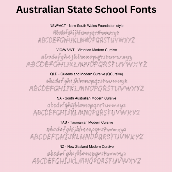 Please be sure to first check with your child's school or kindergarten to enquire what font they teach before placing an order.